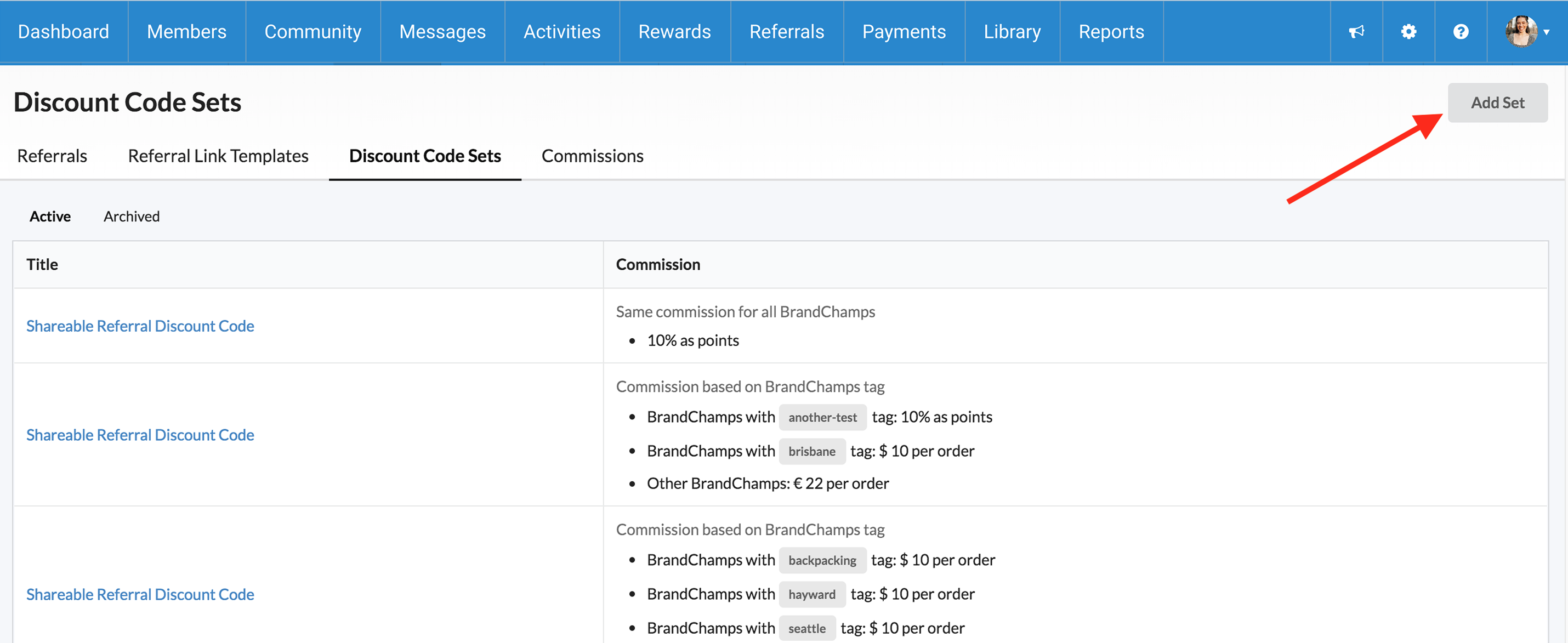 Note: Before creating your Discount Code Set, please set up the Commissions you will offer to your BrandChamps.