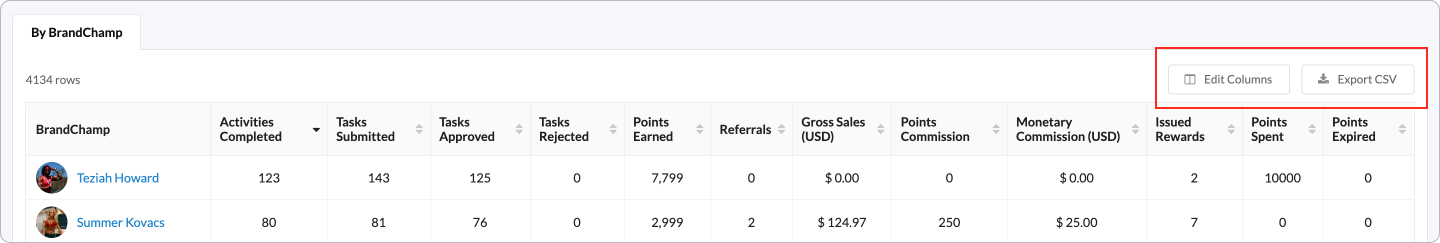 - Understand who is earning, referring, or redeeming the most