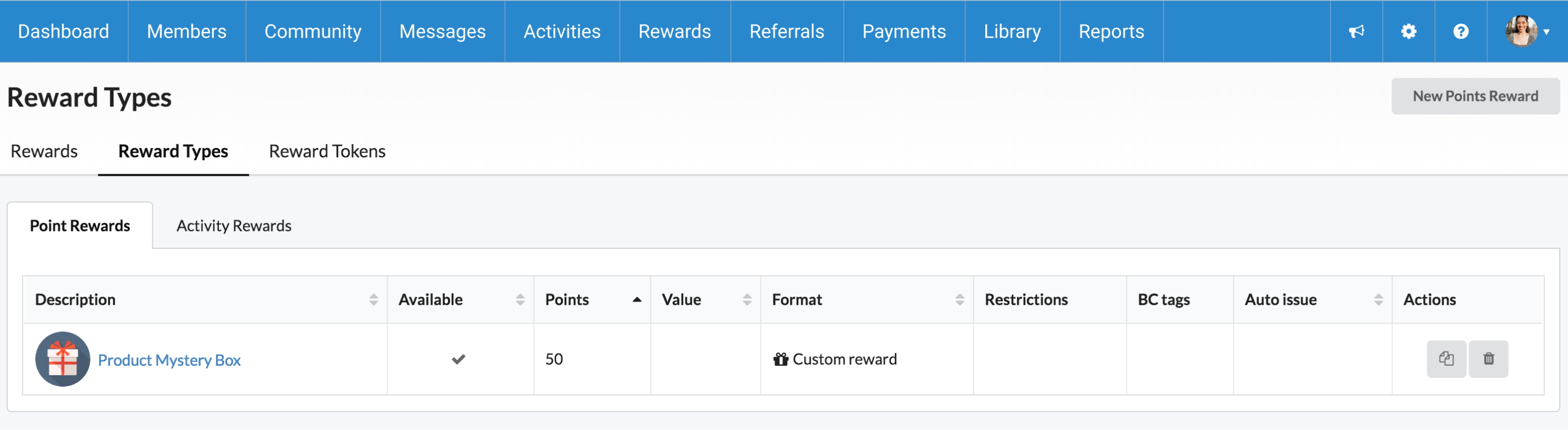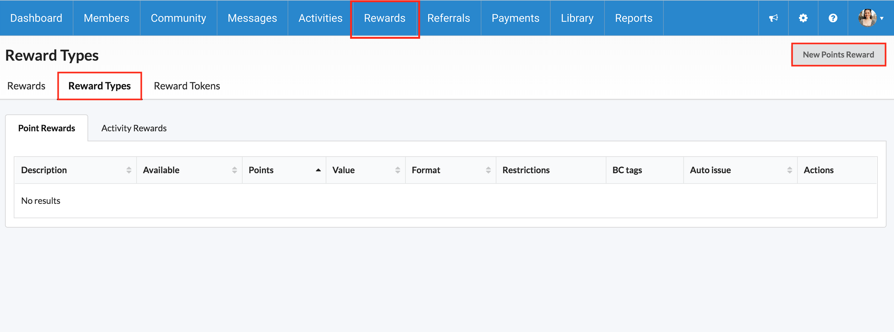 Click "New Points Reward".